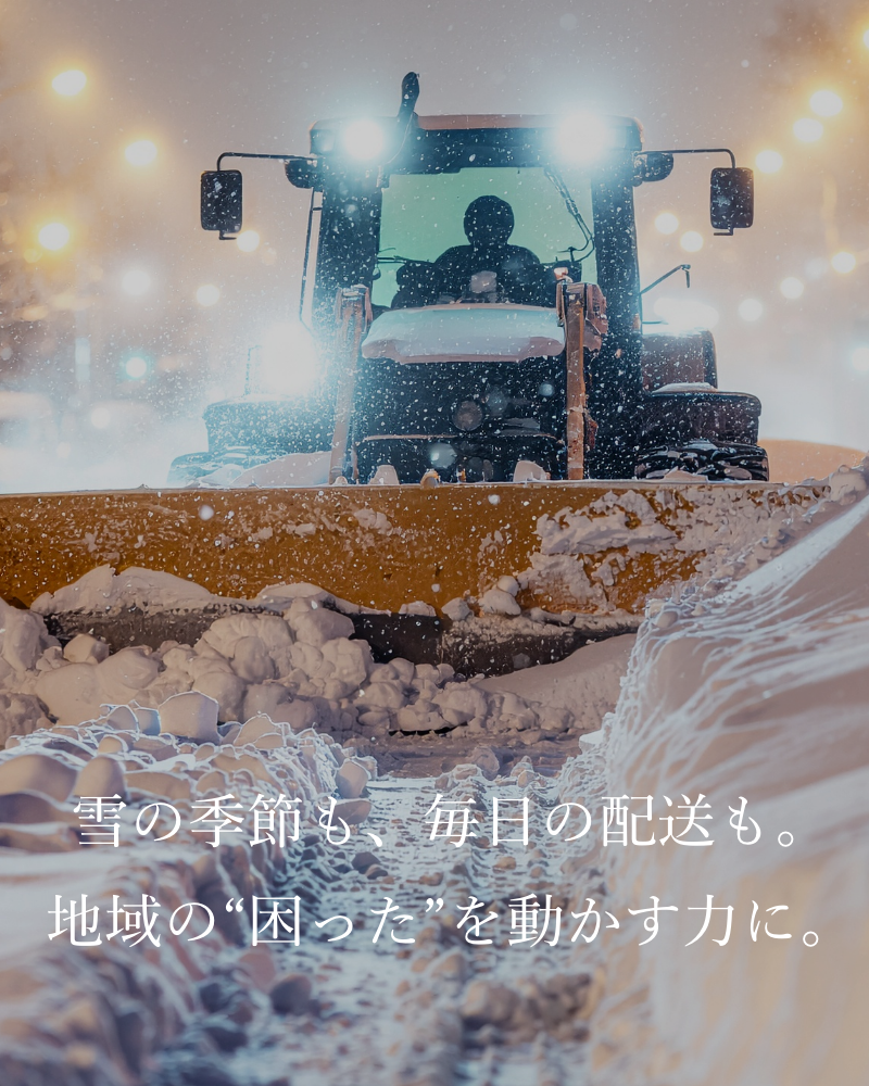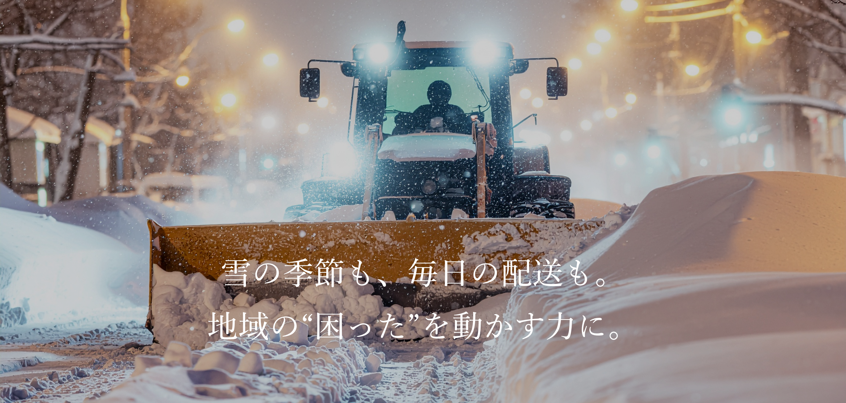 冬は道を切り拓く「除雪」を、通年では暮らしを運ぶ「軽貨物配送」を主軸に事業を展開しています。